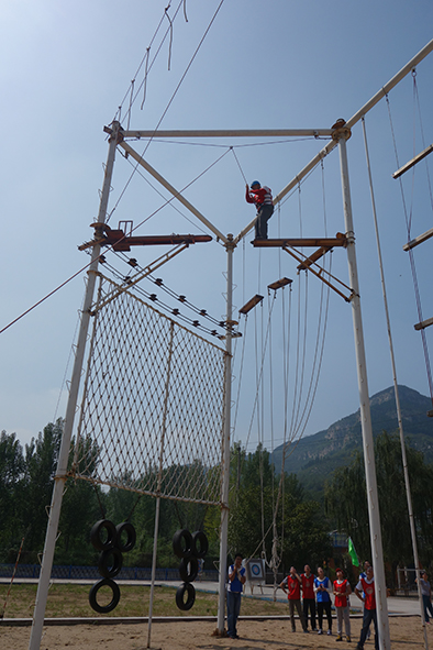 9月20日一早,正式訓(xùn)練之前,教練先是通過團(tuán)隊(duì)熔煉,打破堅(jiān)冰、營(yíng)造團(tuán)隊(duì)氛圍,建立起了相互信任的基礎(chǔ)。緊接著在教練員的指導(dǎo)下,參訓(xùn)人員分成兩隊(duì)在漢諾塔、高空斷橋、空中單杠、時(shí)速極限、激情150活動(dòng)上進(jìn)行了比拼。其中漢諾塔、激情150訓(xùn)練,使大家強(qiáng)烈意識(shí)到團(tuán)隊(duì)成功是個(gè)人成功的基礎(chǔ);個(gè)人成功必須建立在團(tuán)隊(duì)其他成員的共同努力與協(xié)作的基礎(chǔ)之上;高空斷橋、空中單杠等高空項(xiàng)目時(shí),團(tuán)隊(duì)每位成員必須膽大心細(xì),敢于挑戰(zhàn),相互鼓勵(lì),戰(zhàn)勝恐懼;整個(gè)訓(xùn)練項(xiàng)目下來(lái),兩隊(duì)成員實(shí)力不分上下,各有優(yōu)勢(shì),但我們比的不是高低,比的不是結(jié)果,而是在整個(gè)過程中,我們收獲了什么,感悟了什么。