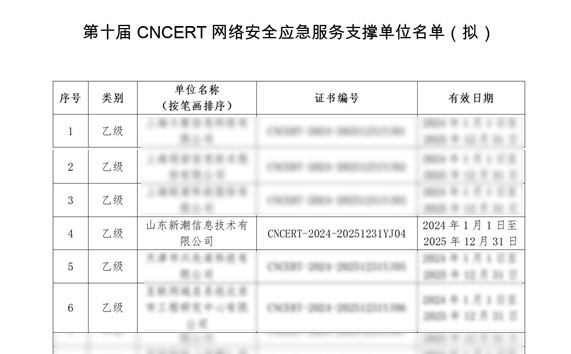 喜訊 | 新潮信息被遴選為第十屆CNCERT網(wǎng)絡安全應急服務支撐單位