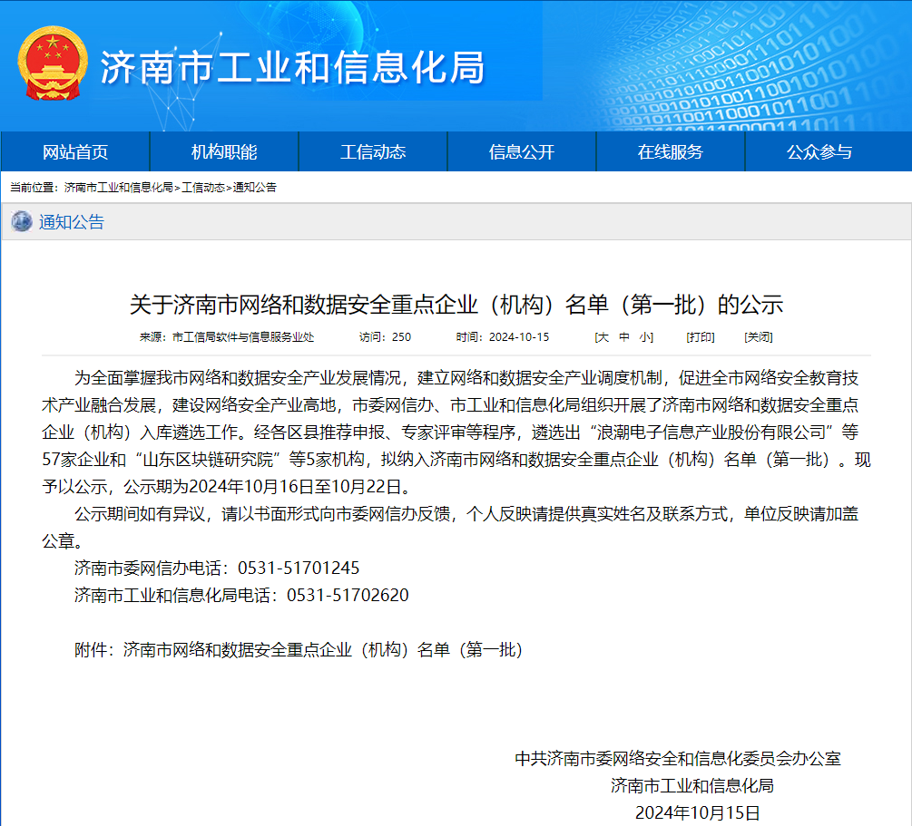 近日,市委網(wǎng)信辦、市工業(yè)和信息化局組織開展了濟南市網(wǎng)絡(luò)和數(shù)據(jù)安全重點企業(yè)(機構(gòu))入庫遴選工作。經(jīng)各區(qū)縣推薦申報、專家評審等程序,山東新潮信息技術(shù)有限公司(以下簡稱“新潮信息”)成功入選“濟南市網(wǎng)絡(luò)和數(shù)據(jù)安全重點企業(yè)名單(第一批)”。