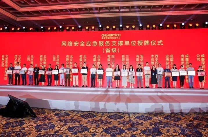 2019年7月17日下午,國家互聯(lián)網(wǎng)應(yīng)急中心(CNCERT)在2019年中國網(wǎng)絡(luò)安全年會上舉行了第八屆網(wǎng)絡(luò)安全應(yīng)急服務(wù)支撐單位授牌儀式,為103個支撐單位授牌。